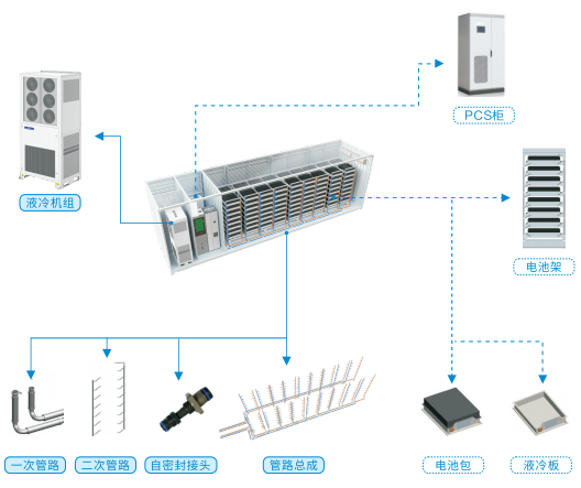 目前,储能热管理系统中的主要冷却方式有风冷散热、液冷散热、自冷散热、固体相变材料散热和热管散热等五种技术。市场上较为常用的冷却技术集中在风冷散热和液冷散热这两项上。风冷散热是以空调和风道供冷为主的散热技术;液冷散热是采用水、乙二醇等冷却液为介质,进行散热的技术。液冷技术路线在电力系统或交通等领域广泛应用,是较为成熟的一种技术,但将液冷技术应用于储能系统特别是电池系统,仍属较大的创新。