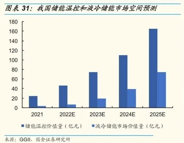 随着行业对电池储能的安全(电池热失控)、效率(电池温度一致性)和寿命的要求越发清晰,储能热管理行业液冷系统渐成趋势。储能市场已步入发展快车道,储能温控市场发展潜力巨大,液冷技术的市场渗透率将逐步提升,储能液冷市场价值4年预计将提升25倍增长至74.1亿元,储能温控系统技术将引领行业带来新的变革,为新能源市场开拓新的发展格局,带来新的增长蓝海!