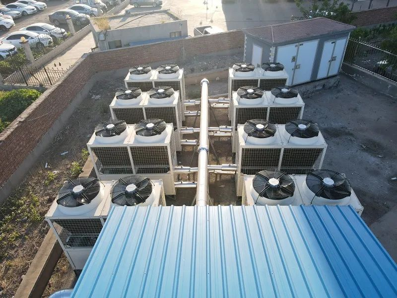 据了解,这两个项目主要满足唐山市丰南区小区25000m²和稻地镇小区100000m²集中供暖,两者均采用了乐鱼-35℃极寒系列60P超低温冷暖机组。乐鱼空气能应用喷气增焓技术,全面提升制冷和制热时的机组运行能力,可轻松应对极端环境下的制冷和制热,机组能效比普通机组提升20%,-35°C低温环境下运行更稳定,制热能力更强。